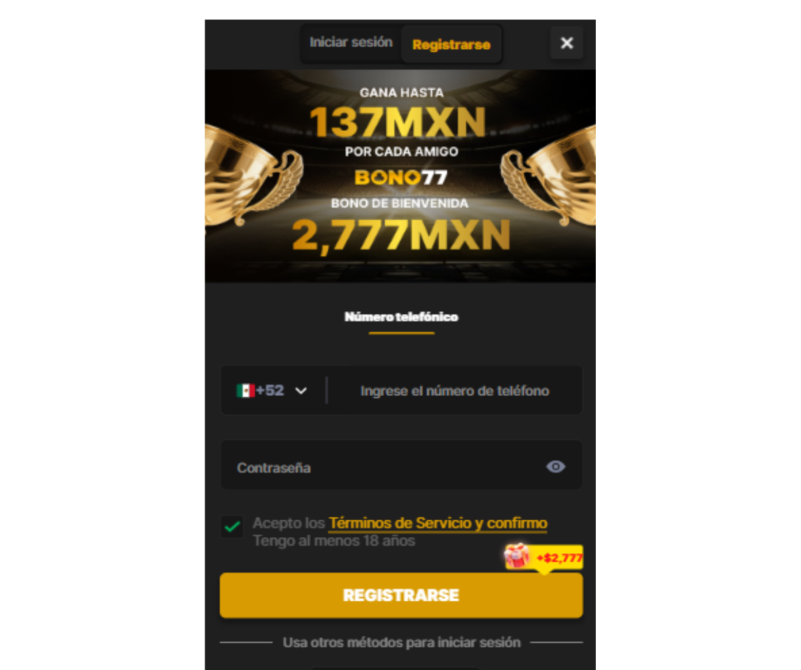 1️⃣ Regístrate en Bono77 desde [este enlace] y recibe tu bono de $2,777 gratis.