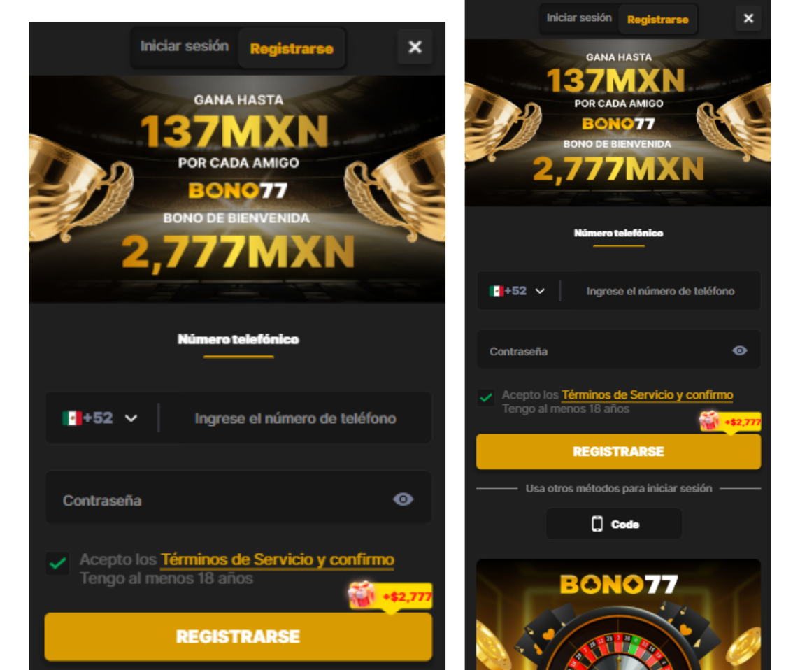 🔐 Sí, es obligatorio registrarte o iniciar sesión con tu cuenta de Bono77 para acceder a todas las funciones, promos y juegos.